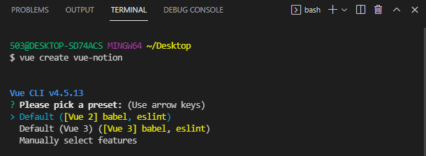 # Vue 프로젝트 생성 & 버전 선택 => Vue2