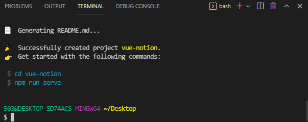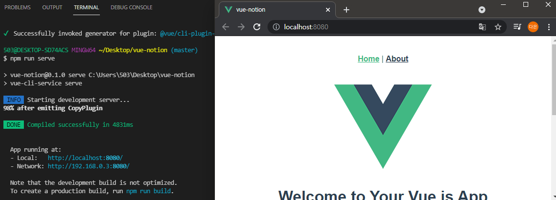# 생성한 vue 프로젝트 폴더 안에서 실행 ("cd 프로젝트명"으로 이동하면 됨)