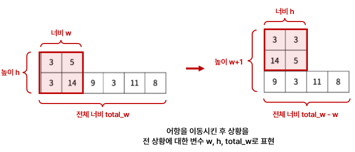# 다음 단계 공중 부양은 높이 stack_width + 1 x 너비 total_width - stack_width