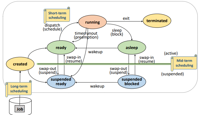- suspended ready : created ~ ready 에서 swap out