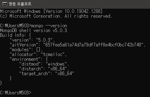 - cmd에 mongo --version
