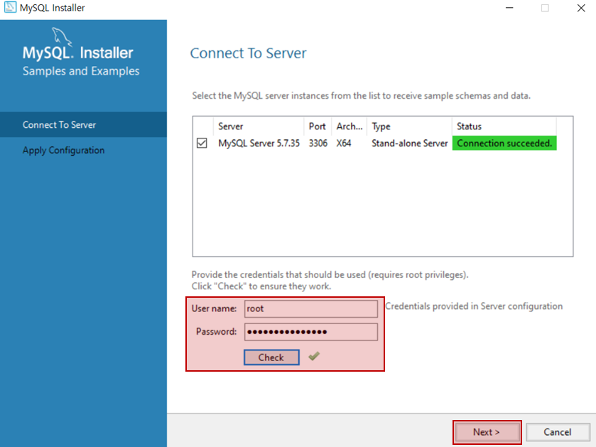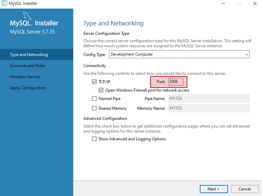 6. 포트 번호가 3306 인 것을 기억하고 next 버튼을 누릅니다.