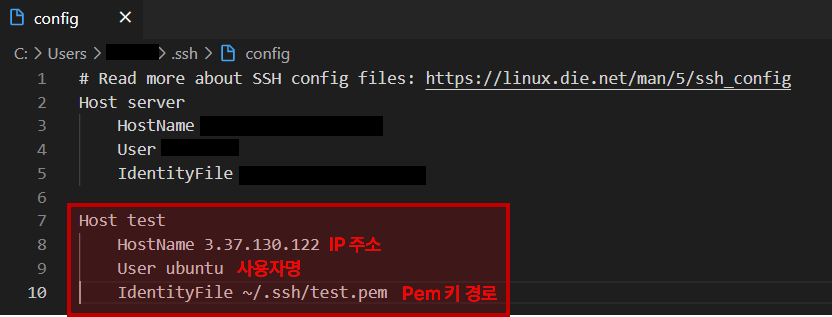 이어서 C:\Users\사용자명\.ssh\config를 클릭합니다.
